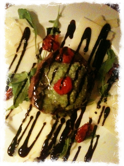 Antipasti till förrätt och oxfilé med pecoriniröra, balsamvinäger och parmesanost, jättegott. Kan rekommendera den restaurangen. God mat och trevligt bemötande.