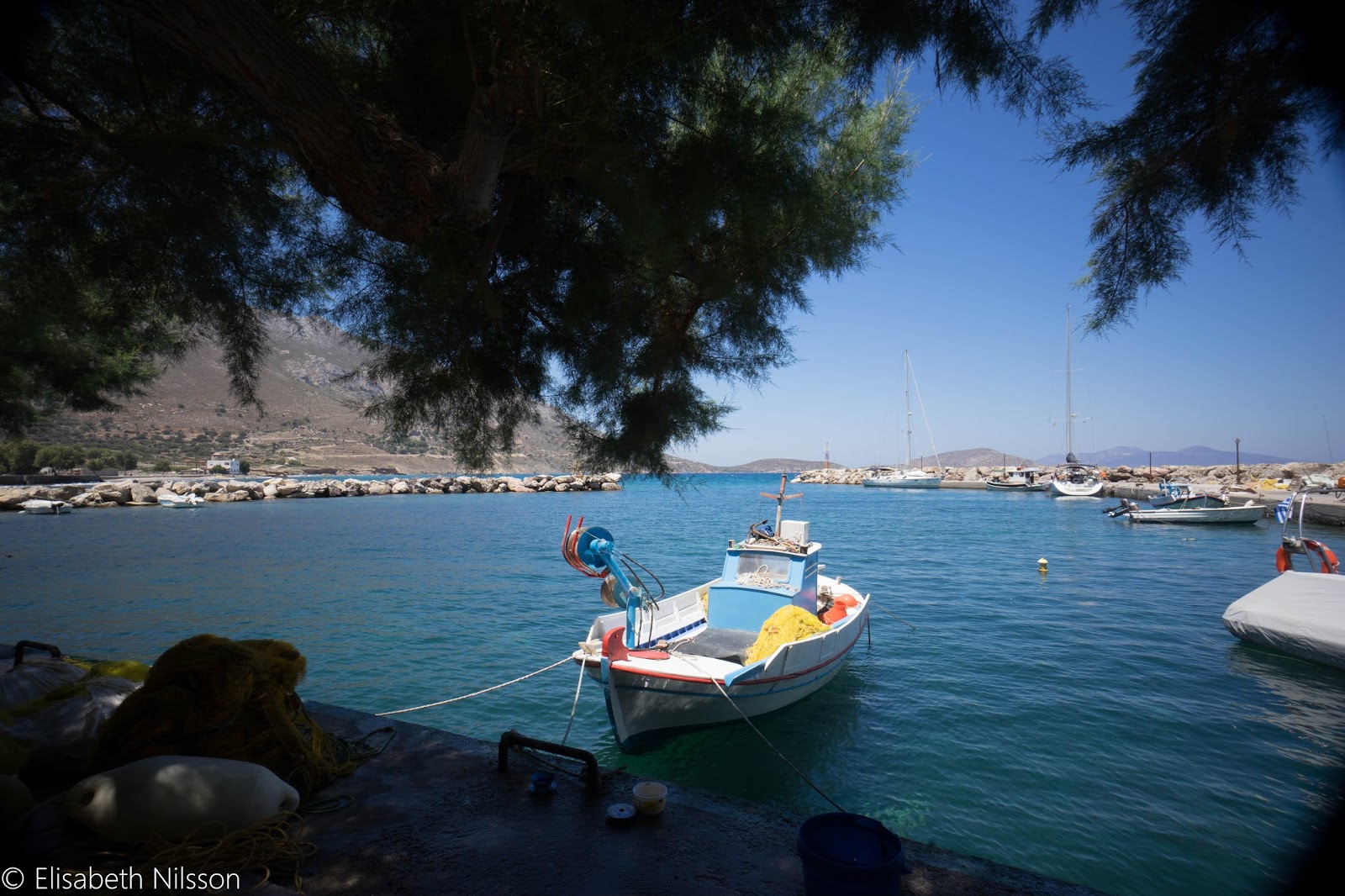 Lunch nere vid hamnen i Agios Antonios. Jättefin liten fiskeby.